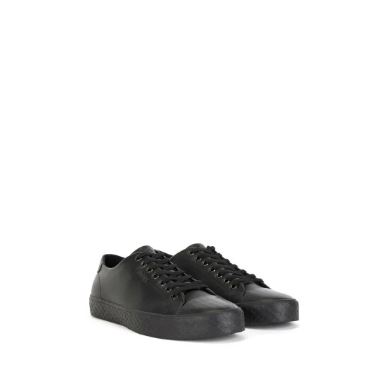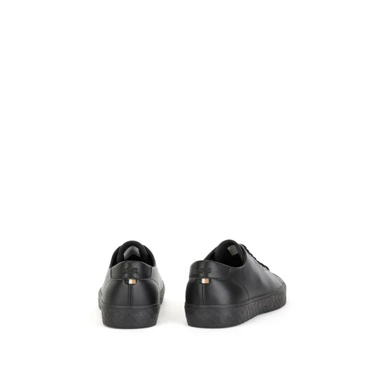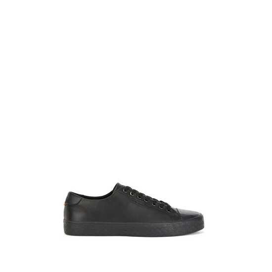 New BOSS sneakers. Full fly leather upper derby design enriched by BOSS logo on the side. Full vulcanised sole enriched by B debossed details. Backtab enriched by institutional tape.