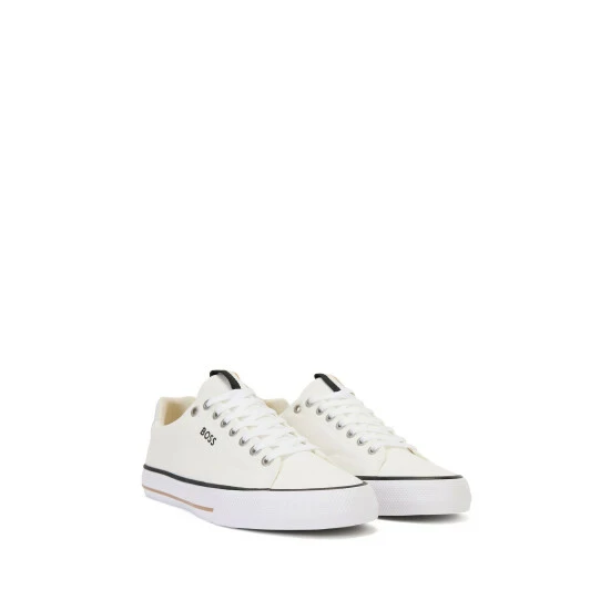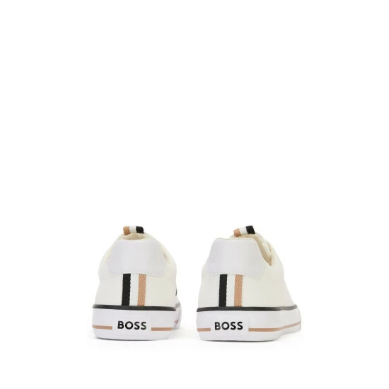 New BOSS sneakers. Full canvas upper derby design enriched by BOSS detail on the side. Full vulcanised sole. backtab enriched by institutional tape. Fresh and seasonal colour combination that fits the deliveries.