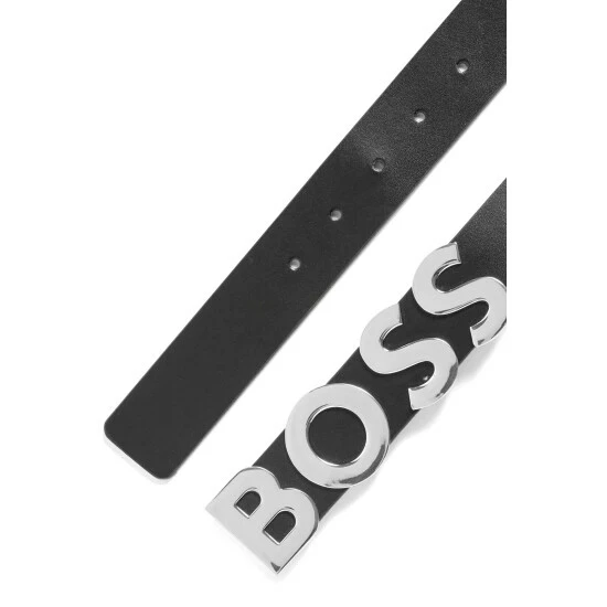 BOSS-Bold belt 3,5cm in structured semi-shiny leather, made in Italy. Featuring high quality Italian leather and unisex style with logo buckle.