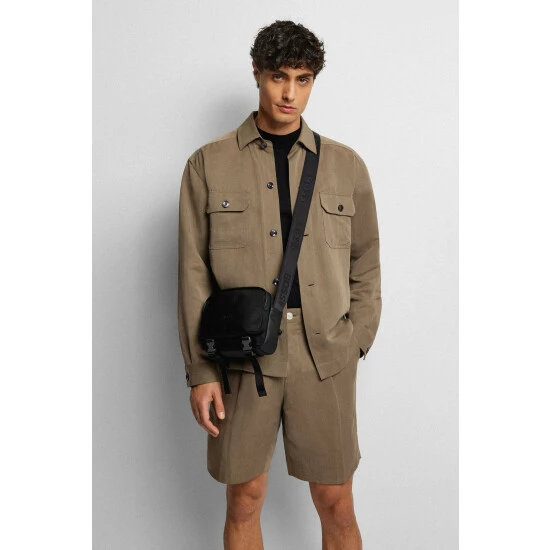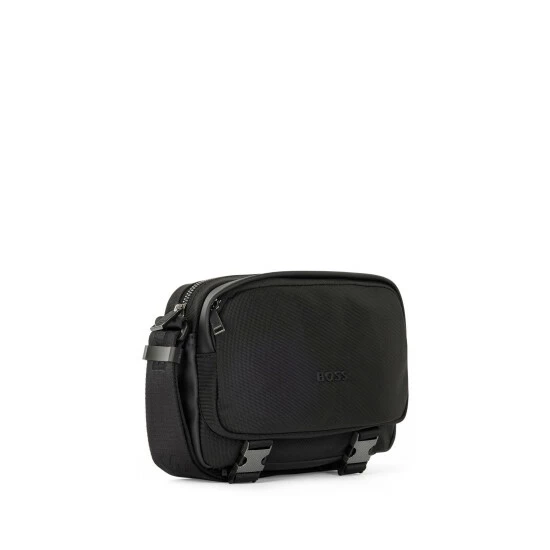 RESPONSIBLE. Featuring valuable lightweight nylon with soft hand feel, main zip compartment, front zip pocket, internal zip pocket, open pocket and adjustable shoulder strap. 21cm x 15cm x 6cm.