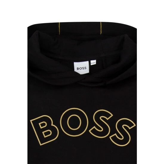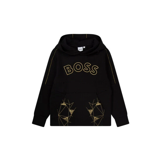 Made of cotton/polyester/elastane, this interlock hooded sweater features pocket with fancy illustration, fancy top stitching on sleeves and hood, “BOSS” print on front.