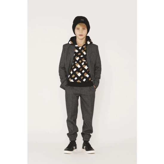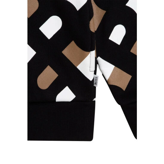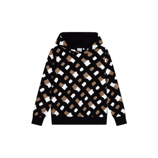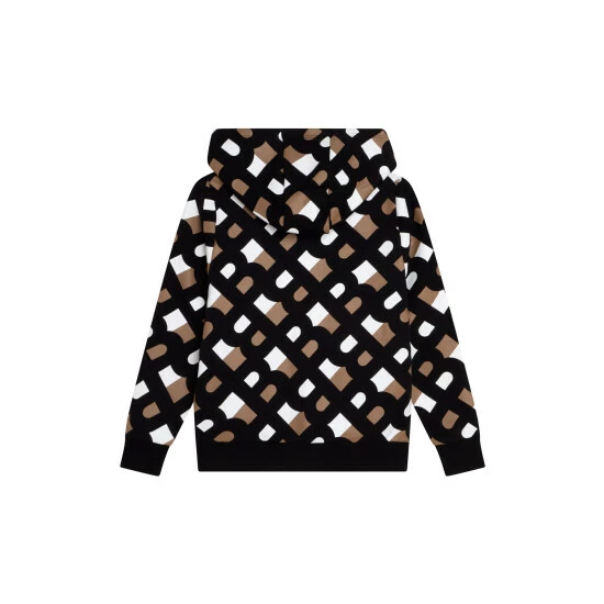 Made of cotton/polyester, this fleece hooded sweatshirt features monogram printed, pockets on the sides, and branded woven label on the side.