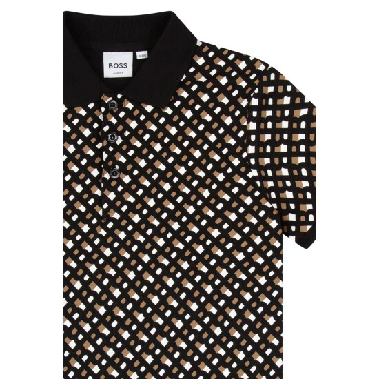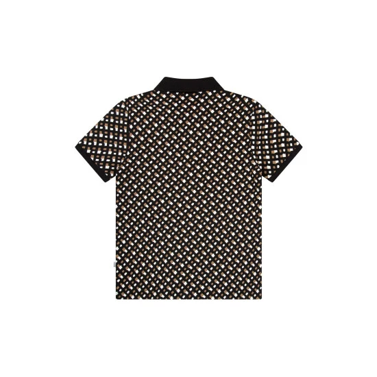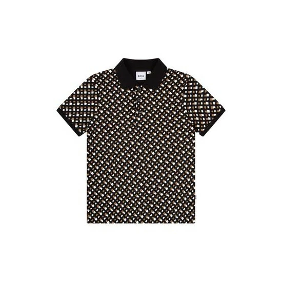 Cotton / elastane piqué short sleeves polo, buttoned fastener, monogram printed, branded woven label on the side.