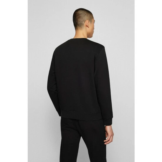 This garment is made from more sustainable materials, for a reduced impact on the planet, Cotton made in Africa, classic French Terry quality, 1×1 rib for waistband, collar and cuffs, tonal woven BOSS patch at left chest.