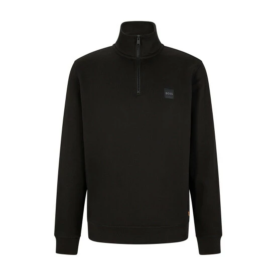 This garment is made from more sustainable materials, for a reduced impact on the planet. Cotton made in Africa, classic French Terry quality, 1×1 rib for waistband, collar and cuffs and tonal woven BOSS patch at left chest.