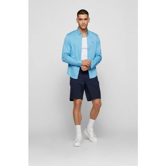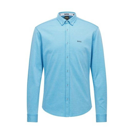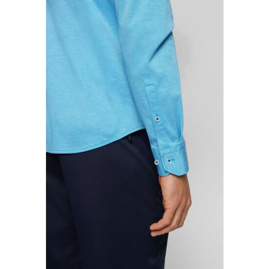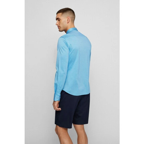 Soft jersey shirt. Seasonal pattern on inside collarstand. Straight boss logo in contrast colour. Jersey stretch guarantees freedom of movement.