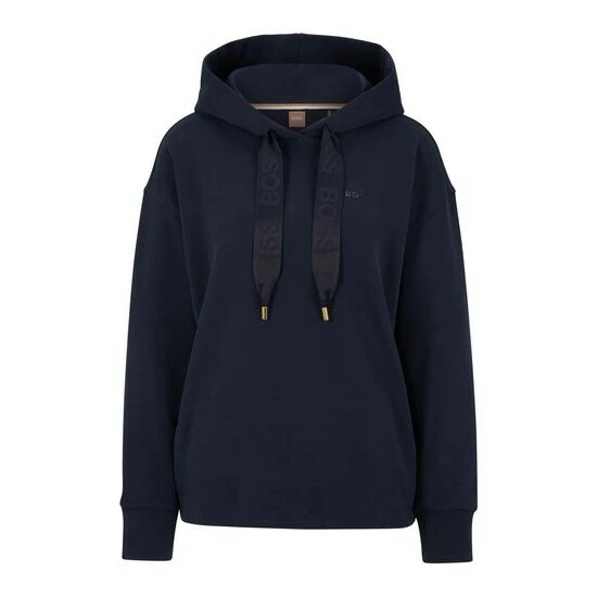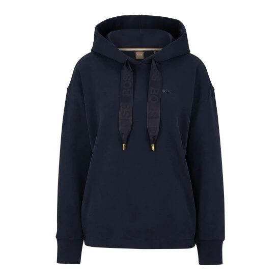 Thin sweaty quality. Hoodie sweatshirt with side-seam pockets. Logo drawstring in tonal to body colour with metal ending. Shiny logo at chest.