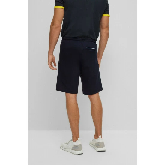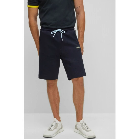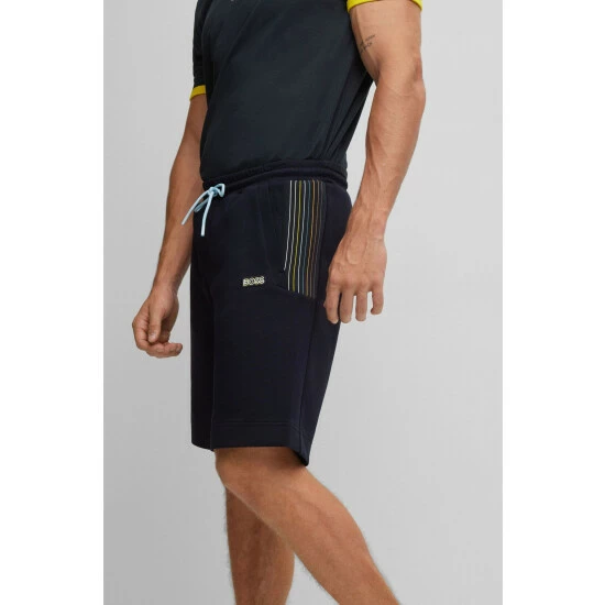 These short sweat pants are designed with knitted tape inserts with multicoloured stripe layout. Featuring multicolored binding and multicolored logo badge.