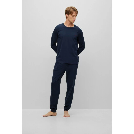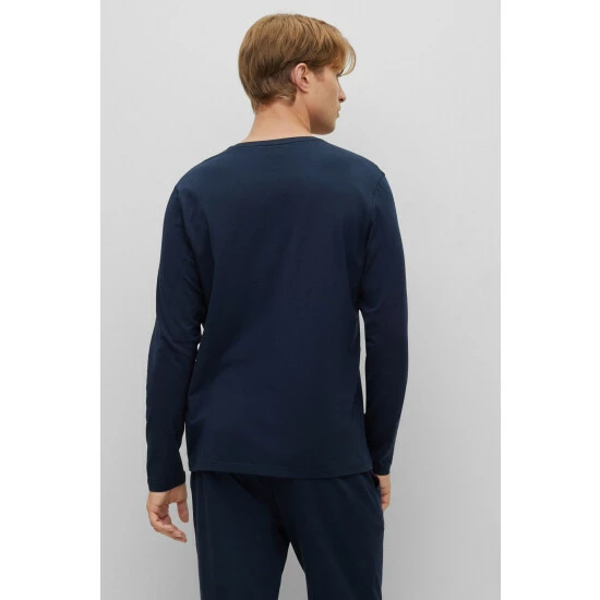 Features single jersey, long sleeve shirts with round neck, contrast new BOSS logo embroidery on the chest, can be easily combined with the whole loungewear and nightwear collection and corporate striped neck tape.
