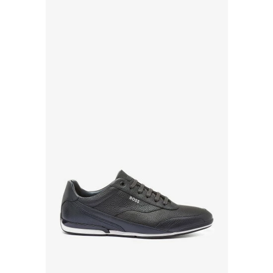 These low-profile BOSS sneakers feature grainy leather and perforated leather. Those are leather-textile lined. Ultralight memory foam insole provides maximum cushioning and breathability. Sophisticated leather upper design enriched by perforated details. Also feature a rubber sole.