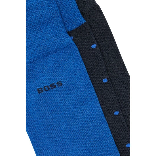Three pack regular sock gift box with polka dot all-over design sock and two solid socks. Black cardboard gift box. Standard length: 30 cm. Certified sustainable soft-compact cotton. Gauge 14.