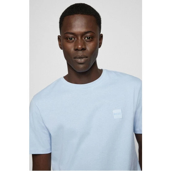 This garment is made from more sustainable materials, for a reduced impact on the planet, cotton made in Africa, midweight jersey, tonal woven BOSS patch at left chest.