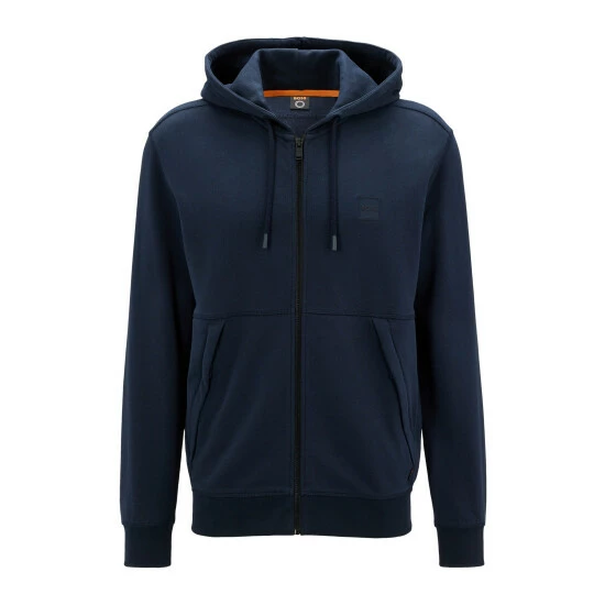 Tthis garment is made from more sustainable materials, for a reduced impact on the planet. Cotton made in Africa. Classic French Terry quality. 1×1 rib for waistband, collar and cuffs. Woven tonal BOSS patch at left chest.