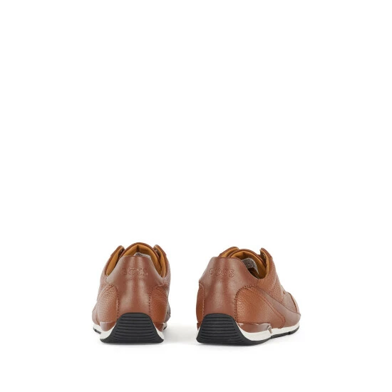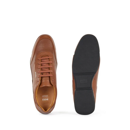 Low profile Boss sneaker. Grainy leather and perforated leather. Leather-textile lined. Ultralight memory foam insole providing maximum cushioning and breathability. Sophisticated leather upper design enriched by perforated details. Rubber sole.