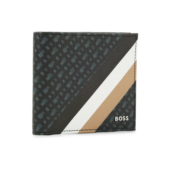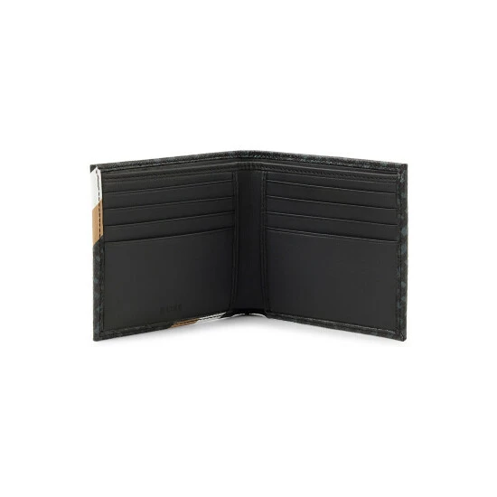 Italian coated fabric with printed iconic all over logo monogram. two bill compartments, eight credit card slots, two open pockets. 11 x 10,5 x 1,5 cm