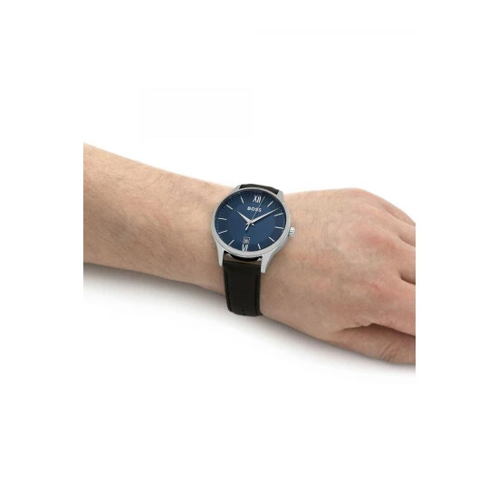 Fulfilled by WatchShop – BOSS gents watch from the Elite family. Featuring a 41mm stainless steel case, blue sunray dial, brown leather strap and BOSS buckle. Water resistant to 5ATM.