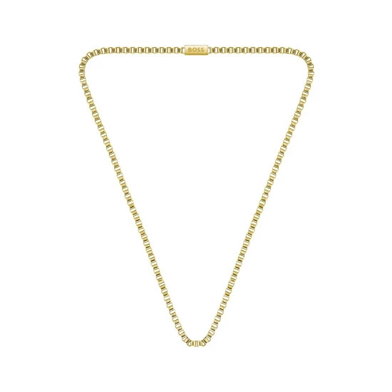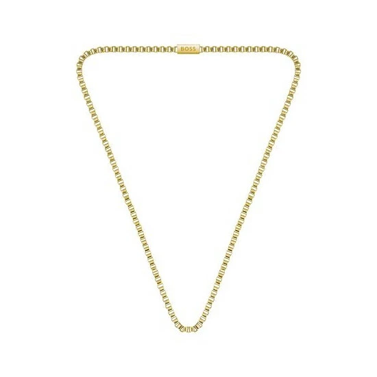 BOSS gents yellow gold IP stainless steel necklace from the Chain for Him family. Featuring 4.2mm box chain with magnetic closure. Length 58cm.
