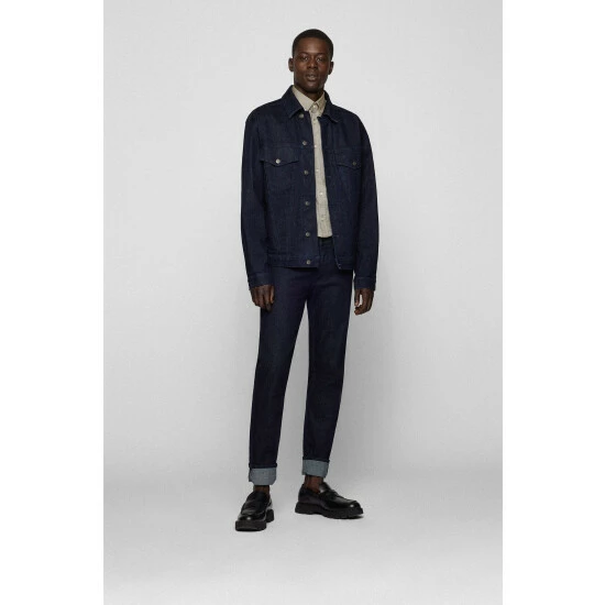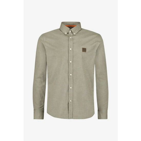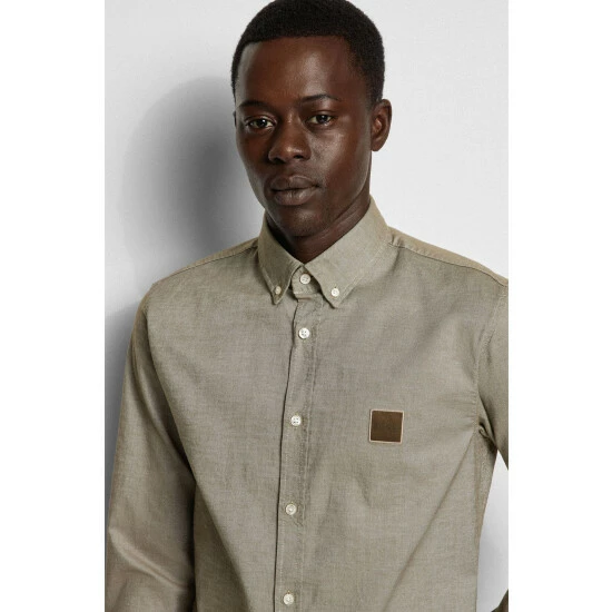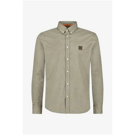 Featuring cotton stretch oxford, a tonal logo patch applied on chest, orange tape applied on the inner collar stand, and orange stitching details on cuff and sleeve vent.