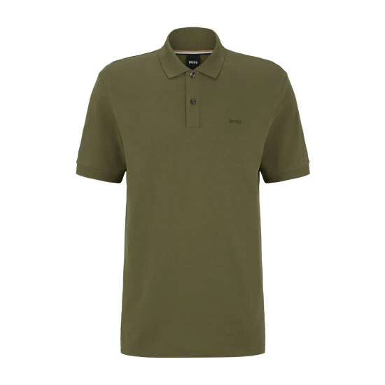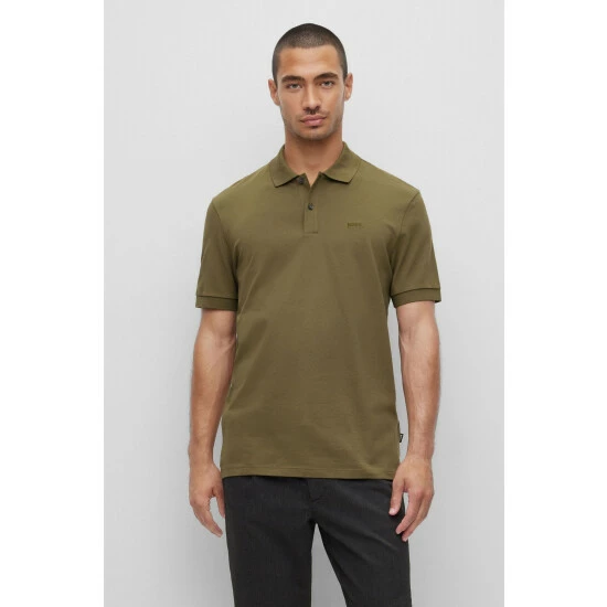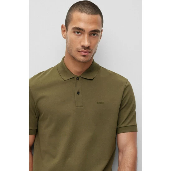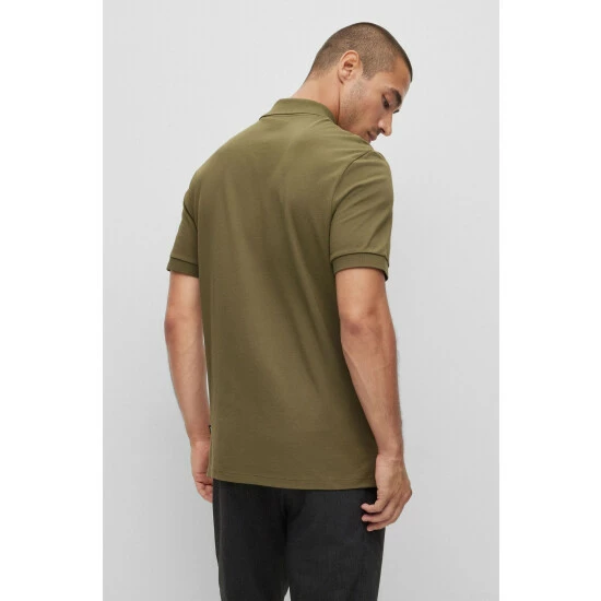 Responsible pima-cotton piqué soft-hand feel. Flat-knit collar and cuffs. Striped iconic neck tape. New BOSS logo stitching on chest. Side slits.