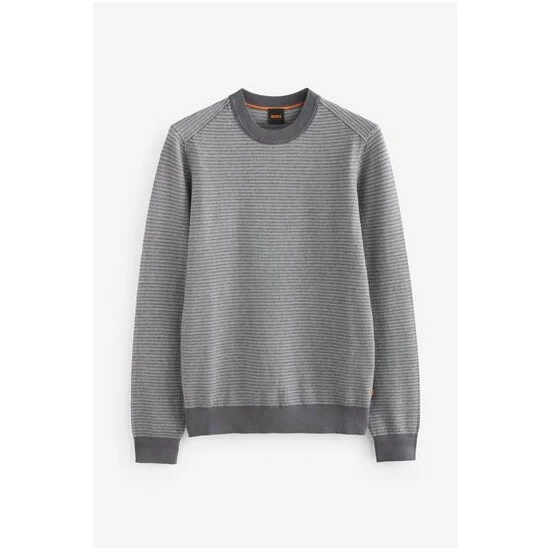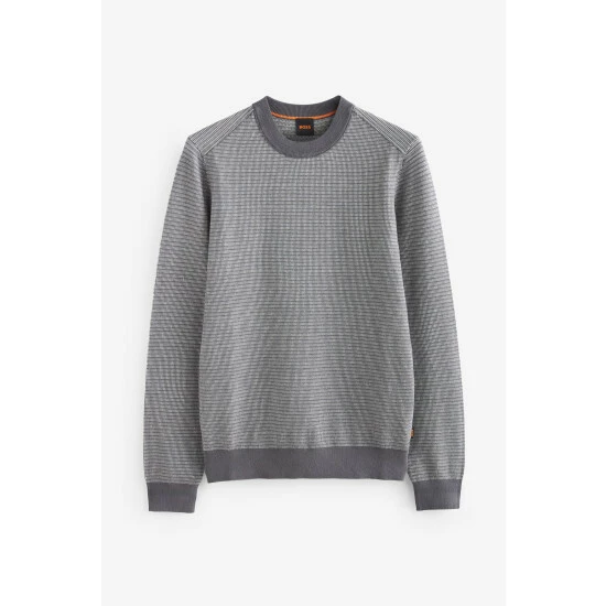 Features an all-over two tone structure crew neck, with French shoulder to the front with visible full fashion marks, and orange stripe inside collar.