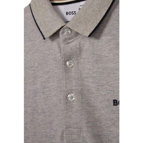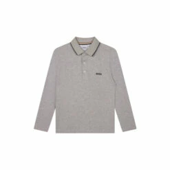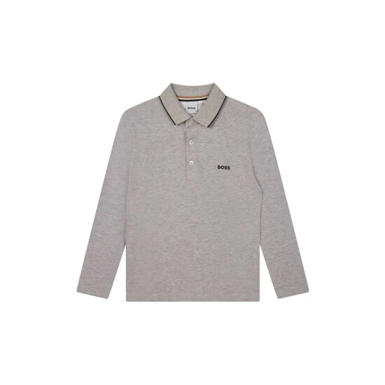 Made of 100% cotton piqué, this long sleeves polo shirt features buttoned fastener, flat knitted stripe on the collar, “BOSS” print on the chest, and branded woven label on the side.