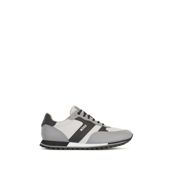 Sporty BOSS running inspired sneakers. Modern upper design in open mesh enriched by rubberised details. Lightweight EVA providing comfort and extra cushioning. Modern rubber and rubberised detail assure a sporty look. Colour contrasting details give a twist to the style.