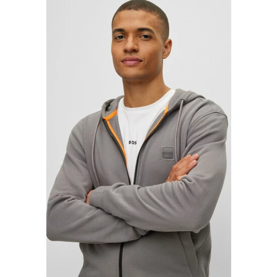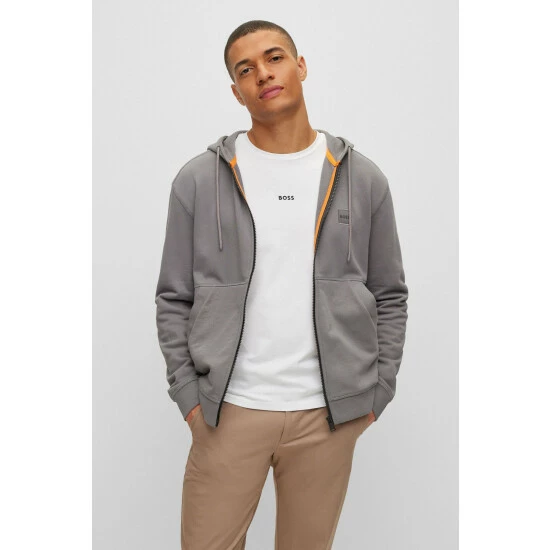 This garment is made from more sustainable materials, for a reduced impact on the planet. Cotton made in Africa with classic French terry quality. Featuring 1×1 rib for waistband, collar and cuffs. Finished with a woven tonal BOSS patch on the left side of the chest.