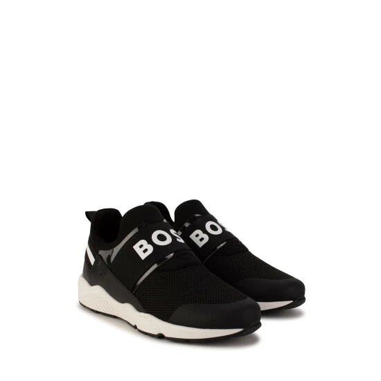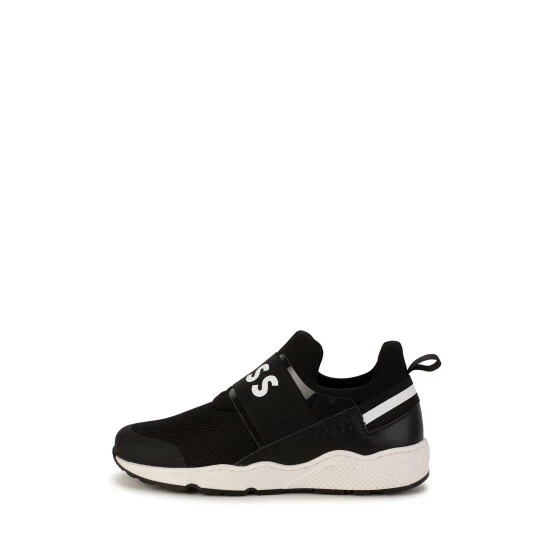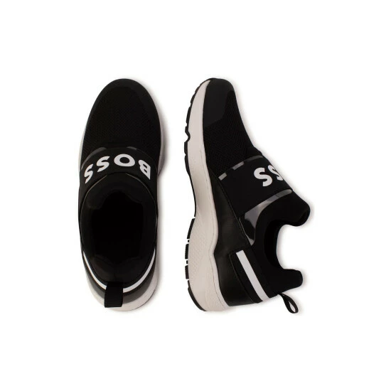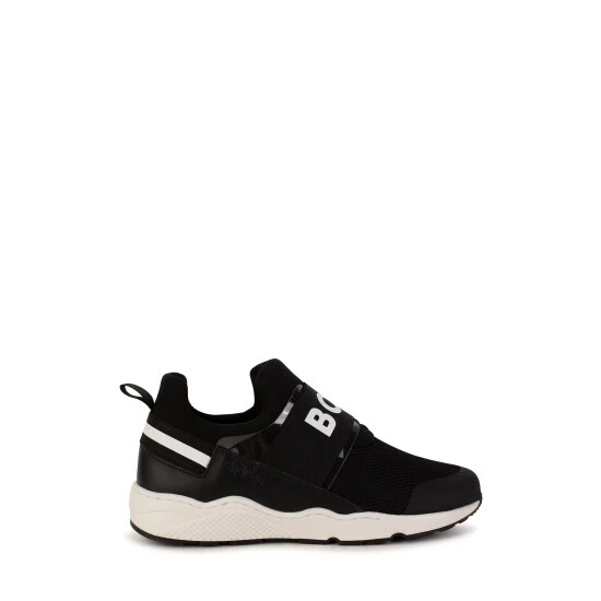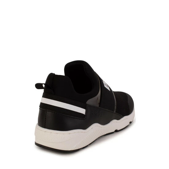 Sneakers in cow leather, technical textile and mesh. Printed elastic closure. Lining textile and insole in breathable and antibacterial. Bicolour outsole. Mineral tanning. Made in Portugal.