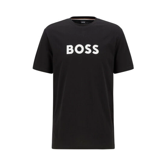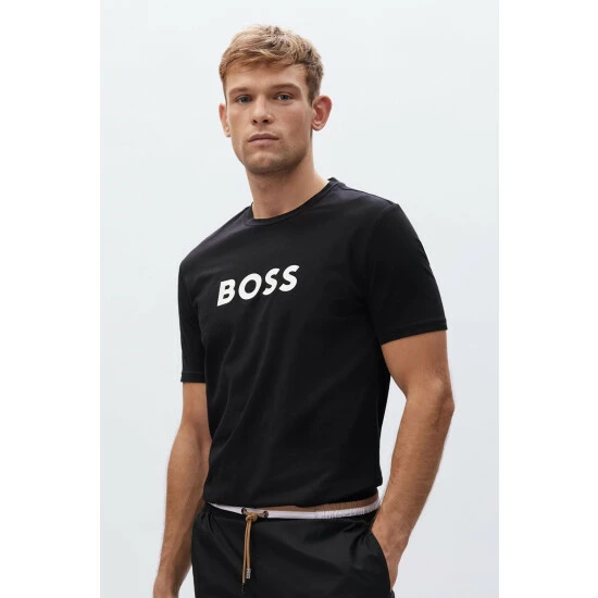 Regular comfortable fit. Big BOSS logo print centre placed on the chest. Corporate stripes necktape. Special finishing upf +50 for long lasting sun protection.