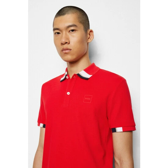 Made with cotton basic pique. Designed with colourblack flatknit, featuring flag label inside left side seam and a tonal 7-layer “BOSS in a frame” print on the chest.