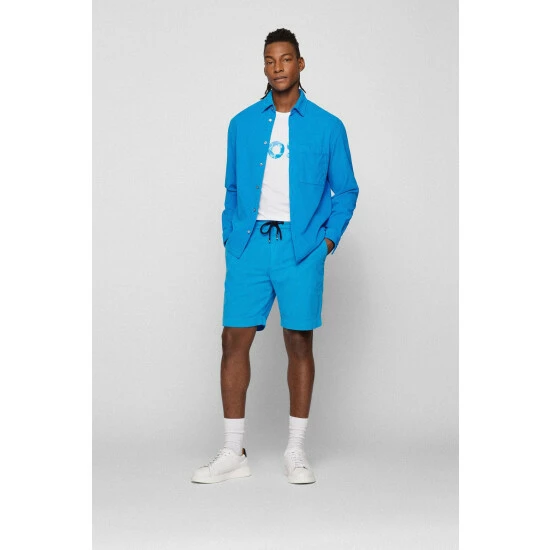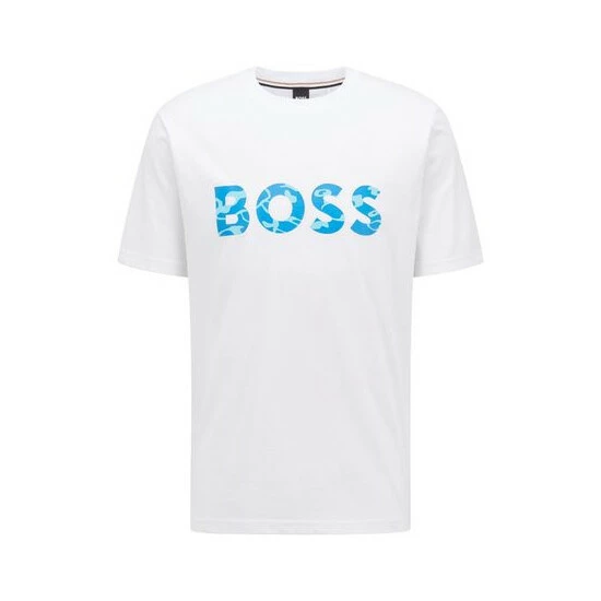 Partly with Bionic yarn which is made of marine and coastal plastic. It’s a soft handfeel T-shirt. It features varied printed logo graphics on chest.