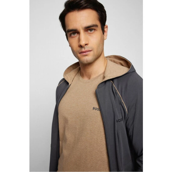 Single jersey fabric short sleeve t-shirt with round neck. Refined neckline workmanship in contrast colour. Contrast logo embroidery on the chest. Corporate striped necktape. Can be easily combined with the whole Loungewear and Nightwear collection.