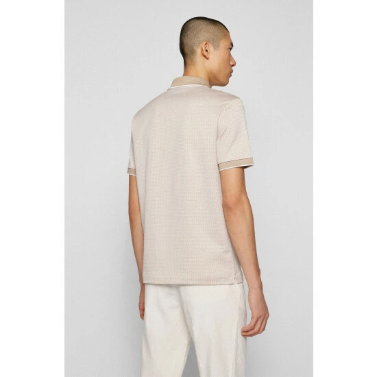 Johny collar out of three-coloured micro pattern has soft handfeel. Collar and cuff out of matching flatknit with short side slits.