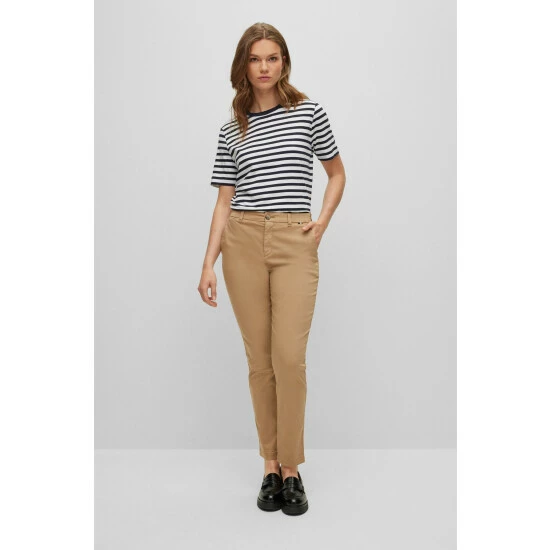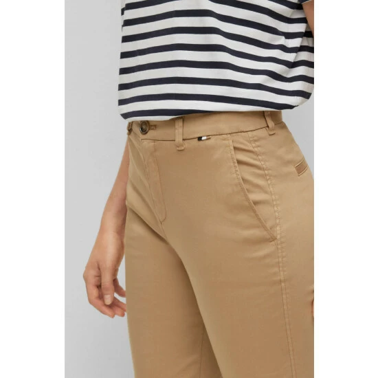 Responsible cotton and dying / garment dye for casual look / iconic stripe binding on inner waistband / new square logo badge in the back / iconic stripe flag on waistband left side while worn/peach finish on fabric for soft hand feel.