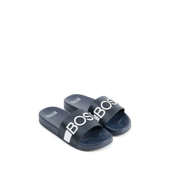 Sliders in PVC with relief effect logo BOSS on upper and printed logo on sole.