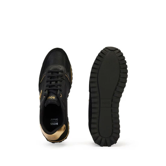 Sporty BOSS running inspired sneakers. Modern upper design in nylon enriched by raised BOSS logo on the quarter. Lightweight EVA providing comfort and extra cushioning. Modern rubber and rubberised detail assure a sporty look.