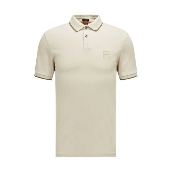 This garment is made from more sustainable materials, for a reduced impact on the planet. Cotton made in Africa. Stretch piqué fabric for wearing comfort. Single contrast tipping. Tonal woven BOSS patch at left chest.
