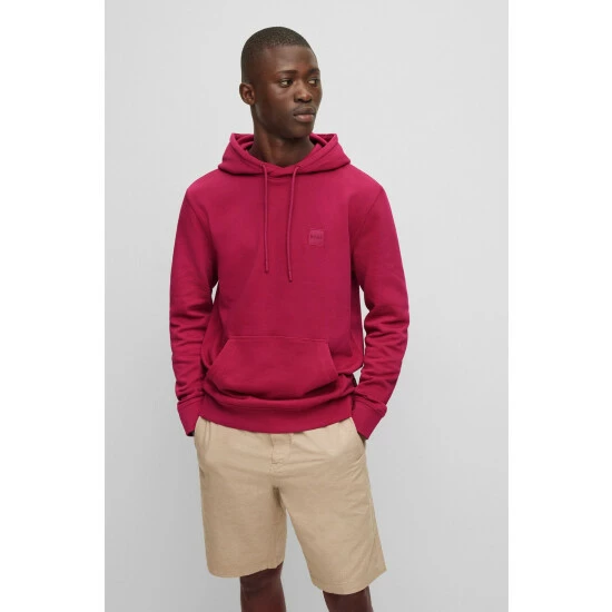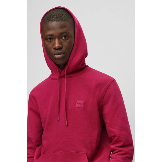 This garment is made from more sustainable materials, for a reduced impact on the planet. Cotton made in Africa. Classic French Terry quality. 1×1 rib for waistband, collar and cuffs. Tonal woven BOSS patch at left chest.