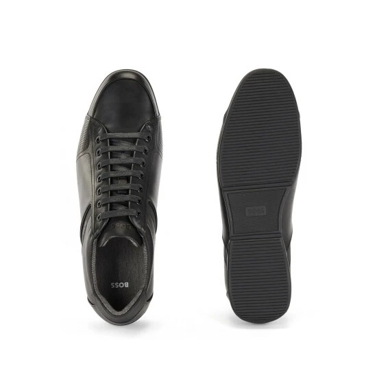 Smooth leather. Rubber sole. Technical Bamboo-charcoal lining material featuring odourless and moisture absorbing properties. Upper finely enriched by “stitch and turn” seam and thermo-bonded and rubberized details.