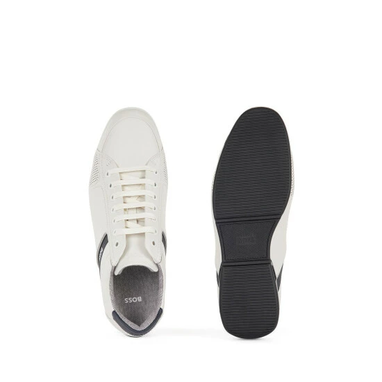 Smooth leather. Rubber sole. Technical Bamboo-charcoal lining material featuring odourless and moisture absorbing properties. Upper finely enriched by “stitch and turn” seam and thermo-bonded and rubberized details.