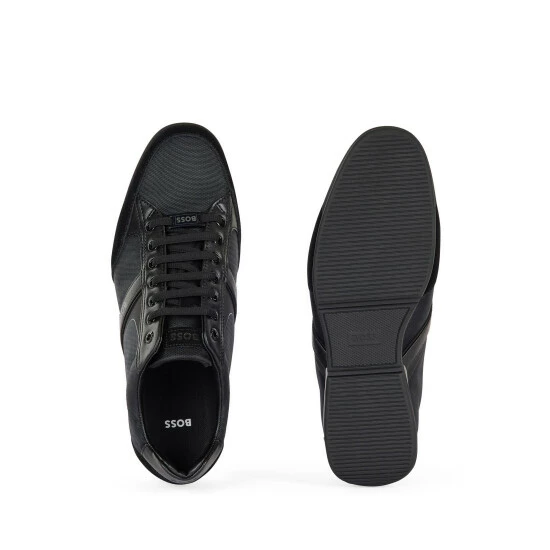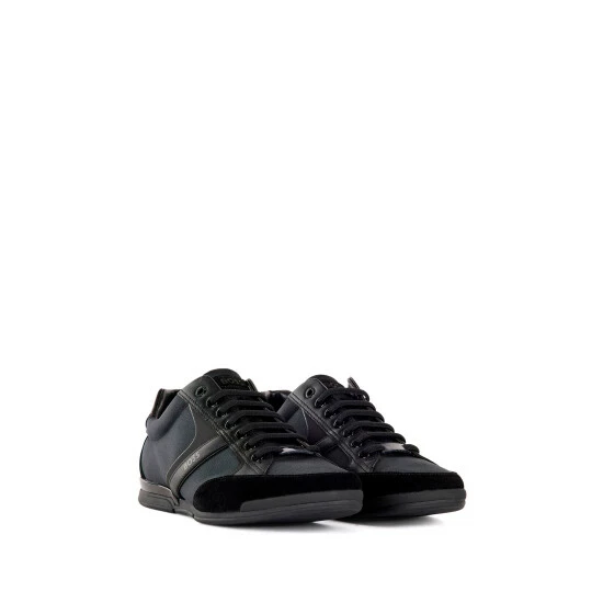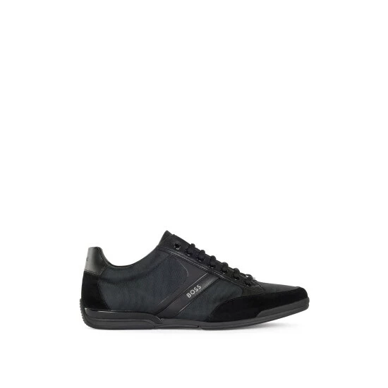 Nylon, suede leather, synthetic nappa and thermo-bonded details. Technical Bamboo-charcoal lining material featuring odourless and moisture absorbing properties. Rubber sole.