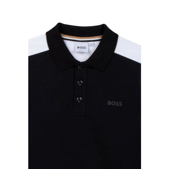 100% cotton piqué short sleeves polo, yokes on the sleeves and shoulders. Button fastening. BOSS jacquard under collar. BOSS print on the front. Branded woven label on the side.