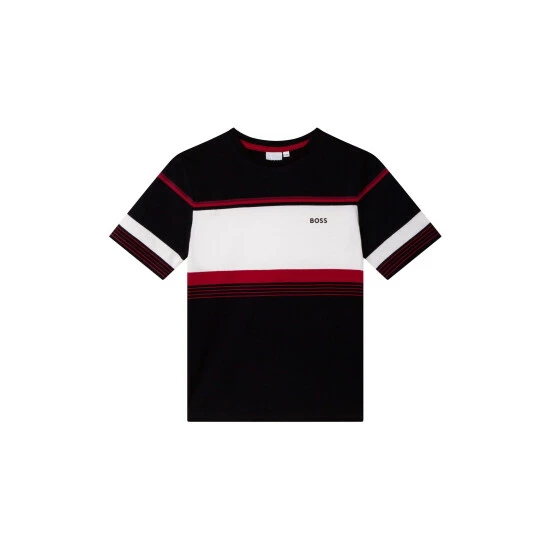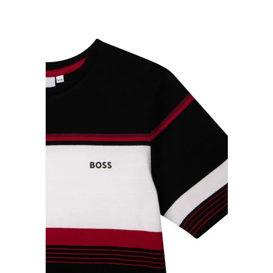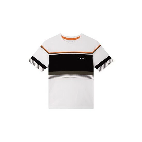 BOSS Short Sleeved Striped Logo T-Shirt White