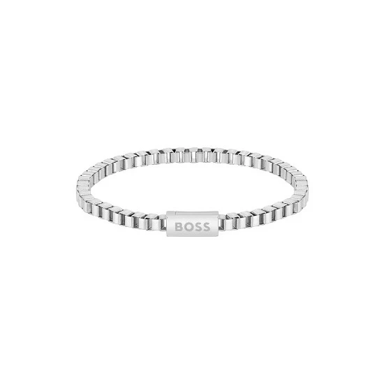 BOSS gents stainless steel bracelet from the Chain for Him family. Featuring a 4.2mm box chain with magetic closure. Length 190mm.