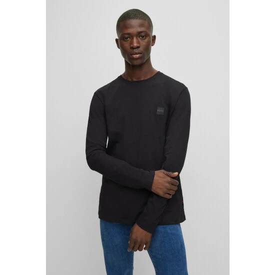 This garment is made from more sustainable materials, for a reduced impact on the planet. Made with cotton made in Africa, this midweight jersey features a contrast necktape and a woven tonal BOSS patch on left chest