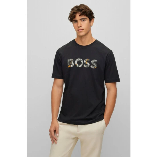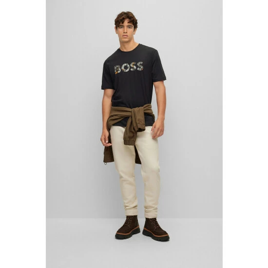 This garment is made from more sustainable materials, for a reduced impact on the planet. Cotton made in Africa. Basic single jersey with different seasonal logo executions. Flag label in left side seam.