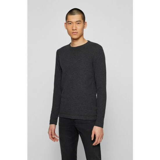 This garment is made from more sustainable materials, for a reduced impact on the planet. Cotton made in Africa. Mini heather waffle. Fabric construction creates high wearing comfort. Flag label inside left side seam.
