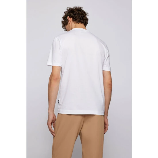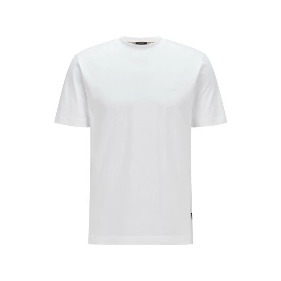 Single jersey with soft handfeel. Sustainable fabric. High density rubber printed BOSS logo on chest. Circular rib collarband.