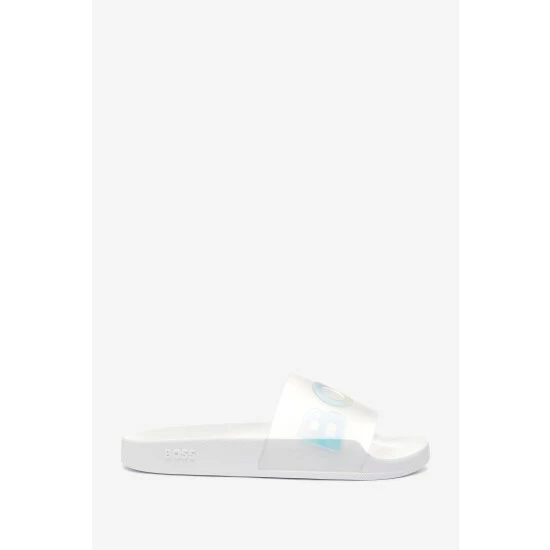 They are made in Italy. Upper enriched by new iconic debossed “BOSS” logo and PVC Sole. The Upper features the seasonal pride colour execution. Clear packaging and branded plastic hangers.