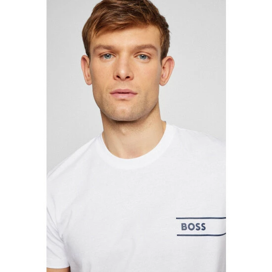 A comfortable cotton T-Shirt in solid executions including a contrast new BOSS logo on the chest printed with heat seal technique.